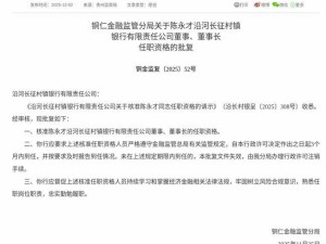 沿河長征村鎮銀行迎新帥:陳永才獲批擔任董事及董事長職務