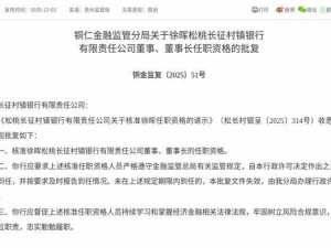 徐暉任職資格獲核準 即將履新松桃長征村鎮銀行董事及董事長之職