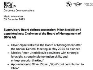 寶馬集團換帥:奧利弗·齊普策退休,米蘭·內德利科維奇將接任CEO