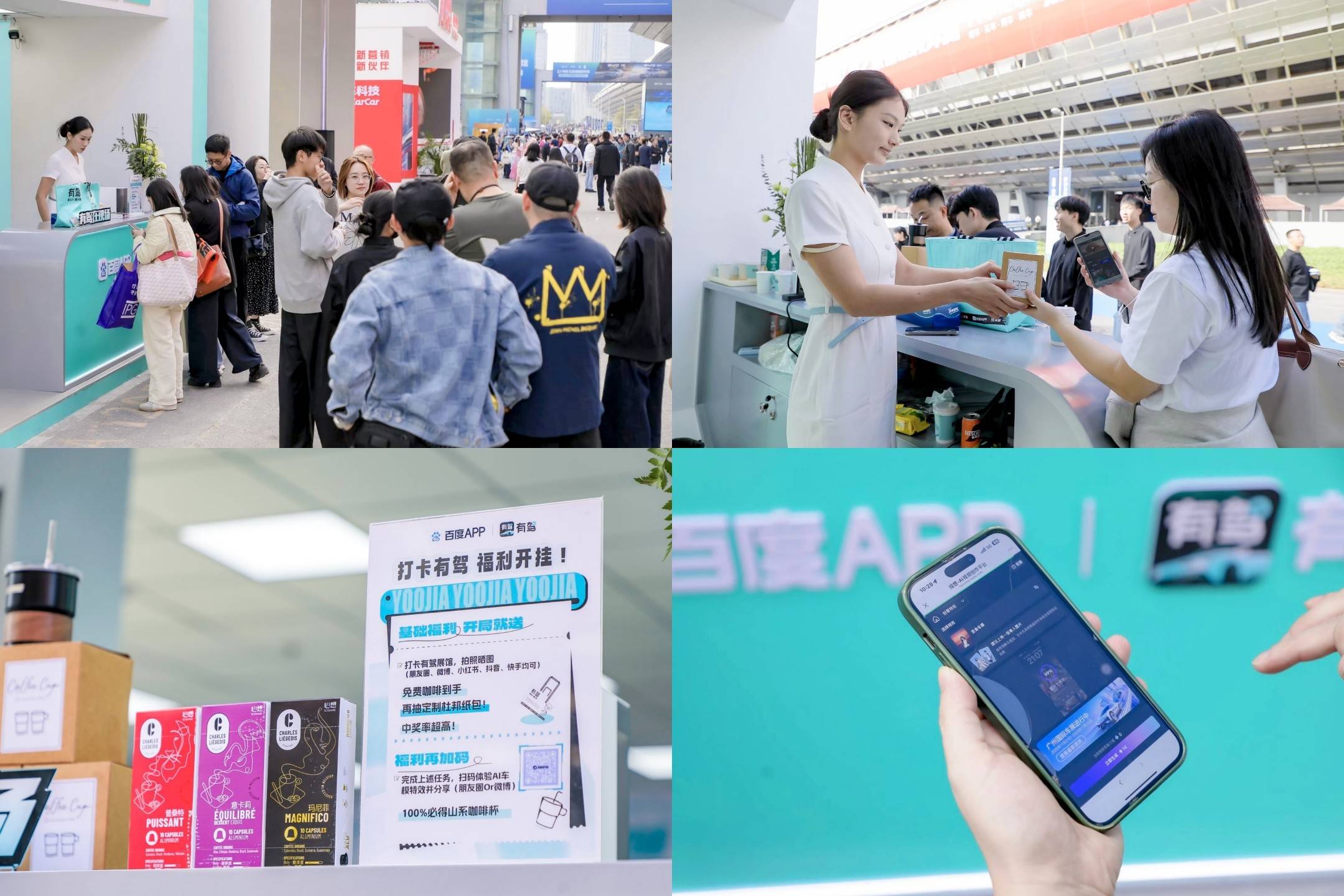 線下體驗方面,百度有駕在車展公眾日推出創新互動活動,將科技與趣味結合,吸引大量觀眾參與。其展臺設置的“刮刮樂”打卡任務,通過完成指定動作即可贏取定制咖啡與周邊禮品,其中最受歡迎的當屬“化身車模”AI特效體驗。用戶上傳照片后,系統可生成其在賽博場景中化身車模的動態視頻,并支持一鍵分享至社交平臺。這一活動不僅為觀眾帶來個性化樂趣,更通過社交傳播為車展增添話題熱度,形成線上線下聯動的傳播效應。